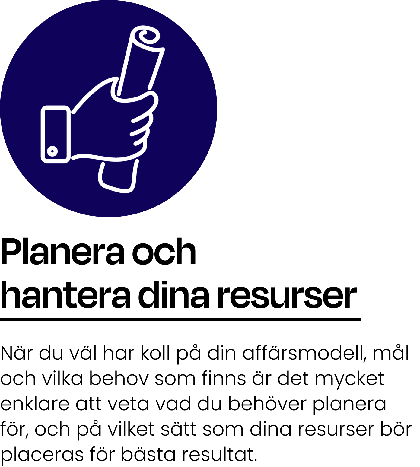 Tillsammans bryter vi ner din idé i konkreta steg, identifierar nödvändiga resurser och utvecklar en handlingsplan som tar dig från start till mål. Oavsett om du har en ny tanke i startgroparna eller redan är på väg.